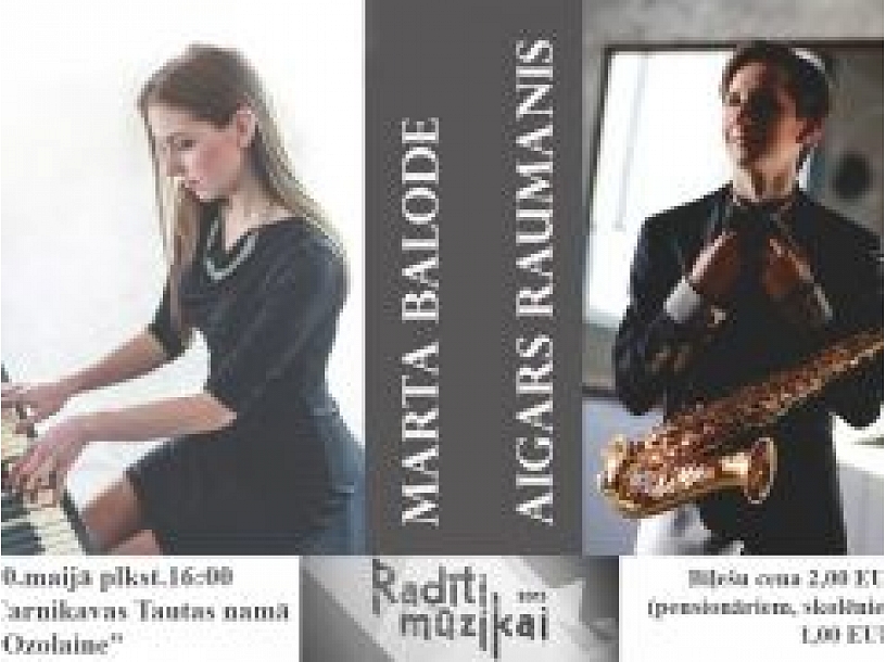 Ikviens interesents tiek aicināts uz Latvijas Televīzijas šova "Radīti mūzikai 2015" dalībnieku Martas Balodes un Aigara Raumaņa koncertu tautas namā "Ozolaine" svētdien, 10.maijā, plkst.16.00, pilsētas informācijas portāls Saulkrasti24.lv uzzināja Carnikavas novada pašvaldībā.